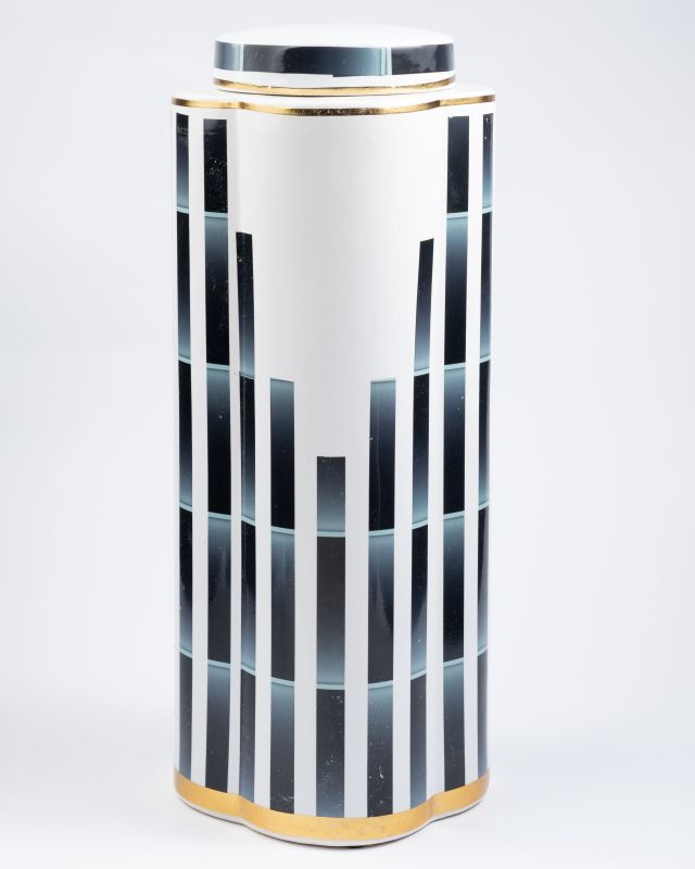 Black & White Striped Ceramic Vase